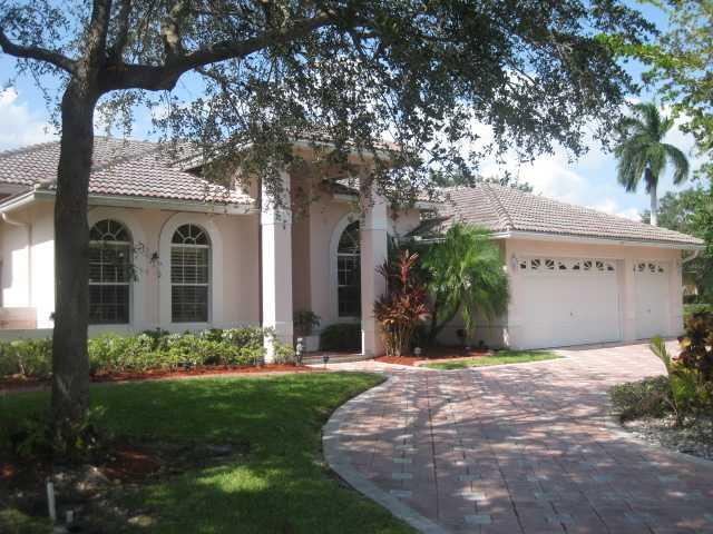 BEAUTIFUL POOL HOME IN PRESTIGIOUS EAGLE TRACE! LARGE OPEN FLOOR PLAN WITH A GREAT FLOW THROUGHOUT THE HOME. VOLUME CEILINGS, FRENCH DOORS, PLANT SHELVES, HIGH BASEBOARDS, HUGE CUSTOM KITCHEN WITH S/S APPLIANCES AND GRANITE COUNTER-TOPS. LARGE PRIVATE COR NER LOT ON A CU-DE-SAC STREET. LUSH SHRUBBERY AND FRUIT TREES SURROUND WONDERFUL GAZEBO AND KOI POND. FABULOUS POOL/SPA AREA. GREAT YARD FOR PARTIES! NICE VIEW OF THE GOLF COURSE. GREAT SCHOOLS! MUST SEE TO BELIEVE! MUST USE SELLER'S TITLE COMPANY.