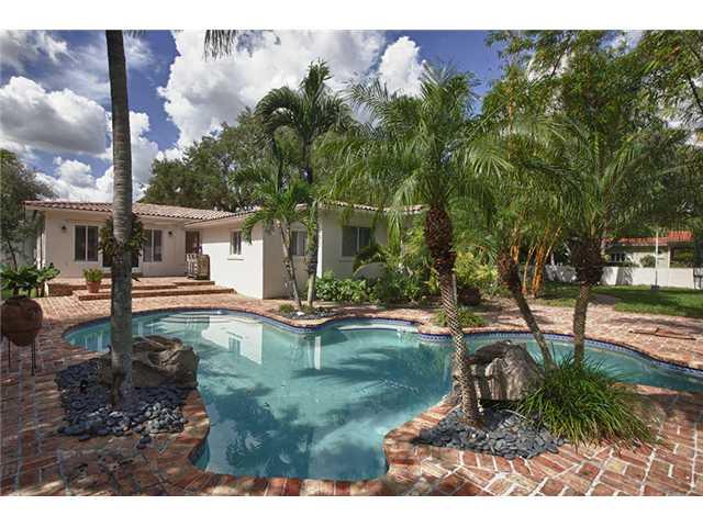 Perfectly renovated 4Br/3Ba in great S Gables neighborhood w/warm, contemporary feel! Open & lg living spaces w/formal liv & din rms opening to fam rm. State-of-the-art kitchen w/Calacatta gold marble counters, stainless appls, wine fridge & custom wood c abinets. Exquisite master addition features a den, spacious BR & beautifully finished bath w/his & hers sinks & walk-in closet. Outdoor Chicago brick patio surrounds the beautiful free-form pool & expansive yard. Marble & hdwd flrs thruout; 2-car gar.