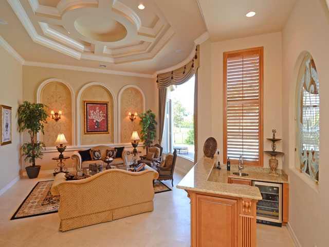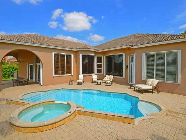 Exquisite Builder's model Home Imagine you pull up to the double porte cochere, a warm & welcoming foyer with water view, crown molding, Gourmet kitchen with all high-end top appliances & gas range, island with breakfast area over looking the pool and lak e, baskeball court, interior features, sophisticated movie theater system is included, sound system throughout, wet bar, office room, tray ceiling, accordian shutters, custom Plantation shutters. Great Master Suite. Fabulous pool with heated spa.
