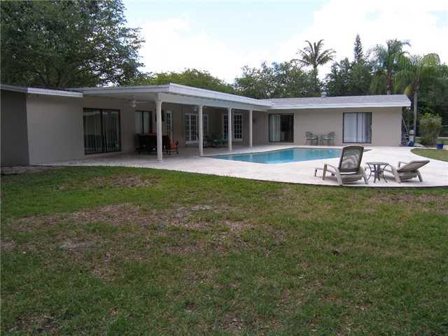 Fabulous open floor plan on a beautiful oak laden lot of just under an acre. Adaptable floor plan to accommodate any family. 3 Br's one side one with it's own full bath and flexible 5th Br/Den/Gym/Office. Private MBR suite makes for the perfect retreat. A lmost all rooms open onto a huge covered patio and picturesque pool and yard through French Doors allowing for lots of sunlight. All this located on a quiet family friendly street in the sought after Village of Pinecrest.