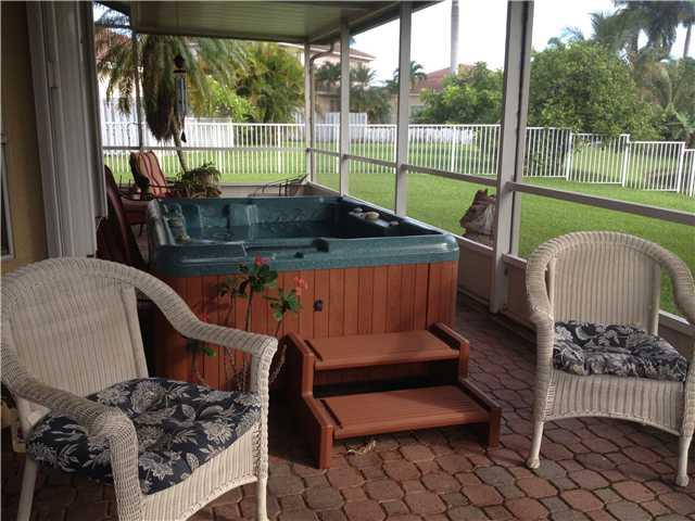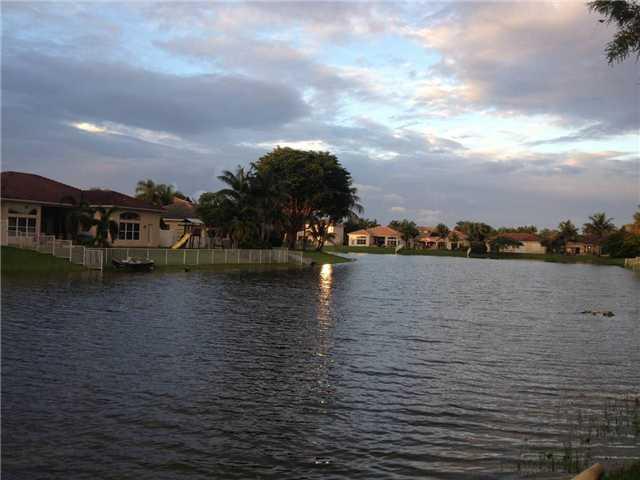 Four bedroom home with 11024 SF lot.Room for pool.Property on the lake. All fenced.Screened porch. Guarded gate. Kitchen opens up to family room. Living & dining room w vaulted ceiling and a sliding glass door to the porch, back yard & lake. split floor plan,throughout tile floor. Master bedroom w/walking closet, separate tub and shower, Dual sink.Just renovated both bathrooms. All SS appliances.A/C unit and Heathwater changed to more efficient one. house comes w/ surrounding sound. YOU WILL LOVE IT!
