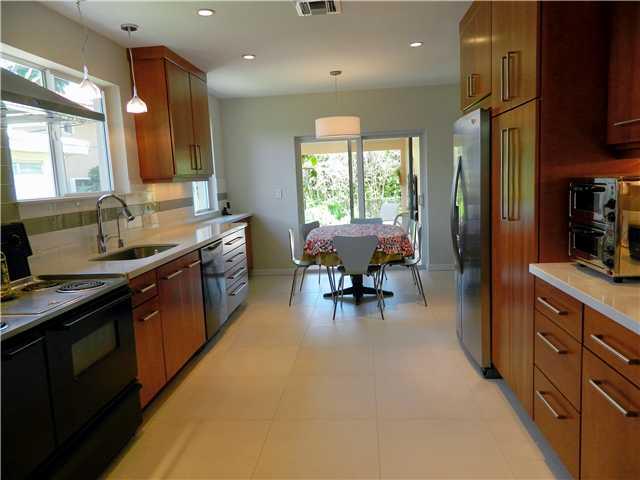 Exceptional value! Charming 2867 SF 4/3 w/2 masters in a split plan. Gorgeous new modern kitchen w/cherry cabinets, silestone counters, SS appliances, 2 ovens & impressive 24x24 white Italian tiles. New separate laundry rm, well maintained baths w/new cab inetry. Impact windows & doors. Beaming wood flrs thru-out living area & large bdrms. Plantation shutters. Oversized pool on 12,000 SF lot w/great patios including covered one outside kitchen. 2011 A/C. 2 car garage. Close to UM & S Miami. Worthwhile!