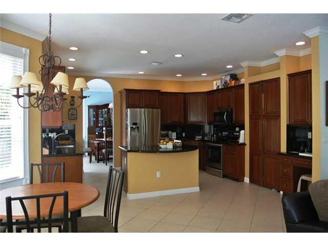 Immaculate Sienna Model with 5 bedrooms and three baths. Elegant spiral staircase leading to the large bedrooms. Tiles through out first floor. Kitchen upgraded with granite counters, stainless steal appliances, and 42" wood cabinets. French Doors lead ing to pavered backyard patio w/ plenty room for pool. Master bedroom has a sitting area and very large closet. One bedroom and bath downstairs.
