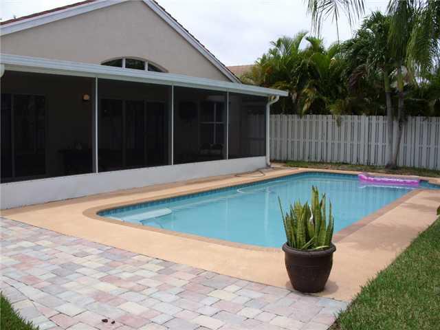 PRISTINE 3/2 1-STORY HOME W/2 CAR GARAGE AND A SPARKLING POOL IN SOUGHT AFTER GATE GUARDED KEYSTONE LAKES IN PEMBROKE PINES. KITCHEN FEATURES WOODEN CABINETS, GRANITE COUNTER TOPS AND CERAMIC BACK SPLASH; STAINLESS STEAL APPLIANCES. KITCHEN OPENS UP TO FA MILY ROOM. LIVING/DINING ROOM HAS VAULTED CEILING AND A LARGE WINDOW/SLIDING GLASS DOOR TO BACK yard. FLOORS ARE NEUTRAL CERAMIC TILE; CARPET IN BEDROOMS. FENCED IN BACKYARD W/POOL AND LARGE SCREENED PATIO. GREAT SCHOOL AREA!