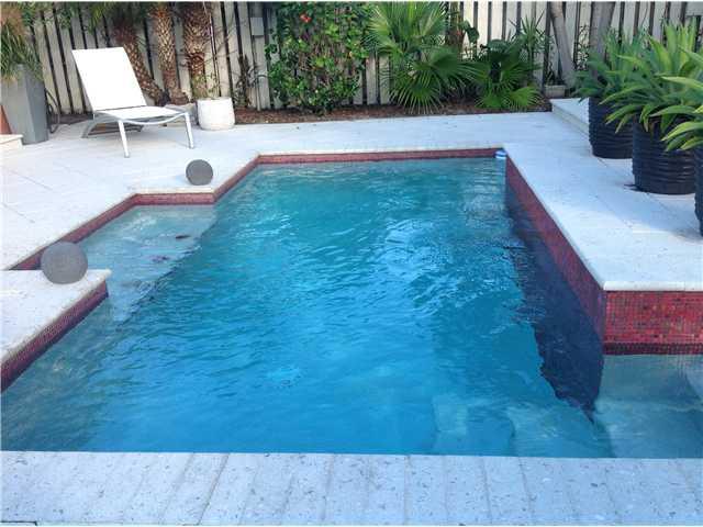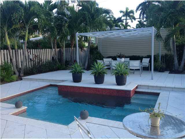 Absolutely gorgeous 3 bed/2 bath professionally updated & designed home. Open plan kitchen w/dining bar area, granite counter tops & stainless steel appliances. French doors leading to Miami Beach style custom pool. Privacy fenced yard, patio & pool area w/lush tropical landscaping & high end tiling. Master w/ large walk-in California Closet.Upscale stylized baths.Golf course view.Inside/outside surround sound system.Impact windows & doors,tasteful Terrazzo & hardwood floors,crown moldings,ample storage.