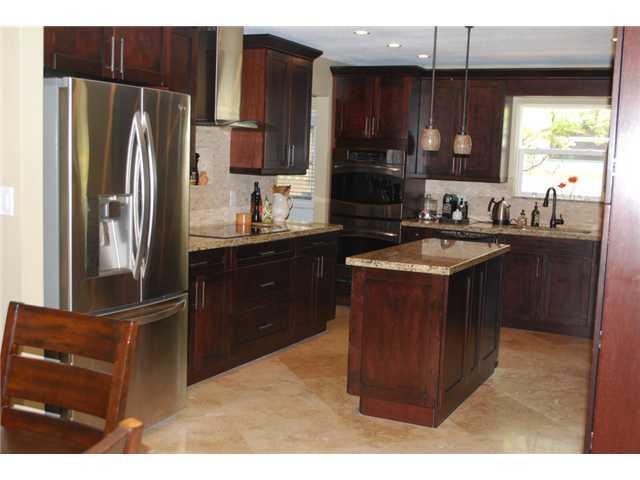 Fabulously updated home in beautiful Hollywood Hills! Phenomenal kitchen with granite counters, wood cabinets, stainless app. & stove hood,island, wine ref., & breakfast bar! Both bathrooms completely updated in high style. Travertine marble floors throu ghout living areas/high-quality wood laminate in bedrooms. Huge family room with working fireplace and French door to exterior. Fenced yard, garden, shed, access to alley for additional parking. Entire electrical system recently updated. A true beauty!