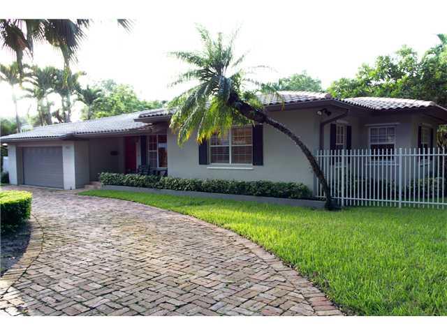 Beautiful 2bed/2bath Coral Gables charm is completely & tastefully remodeled. Spanish tile throughout living, dining room,& kitchen. Wood floors in bedrooms. Baseboards & custom crown-molding throughout. Stainless steel appliances & granite counter tops w / full backsplash. Bathrooms completely remodeled. Living room ceiling wired for surround sound. Covered back patio & Spanish tile floors w/ room for a pool. This home's in excellent condition and move-in ready! Directly across from Merrie Christmas Park!