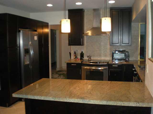 3 Bedrooms 2 Baths, new kitchen with Stainless Steel Appliances, granite counter tops, Hurricane impact windows, new A/C, new electric panel, new pool pump. Tile in living room, dining room and kitchen. Wood and Carpet on bedrooms. One bathroom updated wi th Travertine. Lot fenced in 2011. Come to see it and you will fall in love.