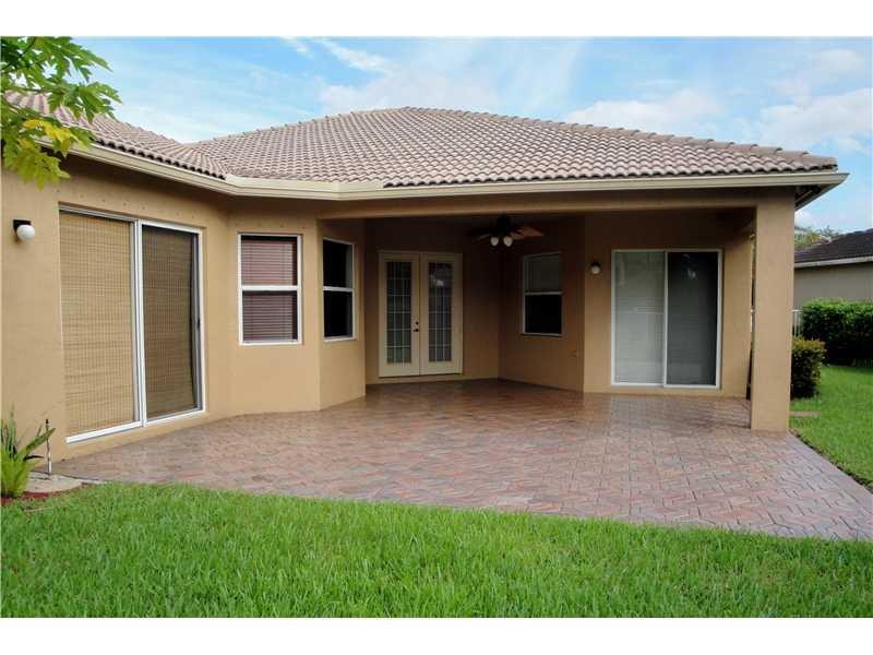 Spacious elegant home in one of Weston's newest communities**Private lot on preserve & water with no back neighbor***Tile & laminate floorings**42 inch cabinets with granite counters & stainless steel appliances***French doors in living room**Inside utili ty room with upgraded washer & dryer***Large patio with fenced yard & room for pool**Hurricane shutters***Maintenance includes 24 hr guard, basic cable, monitored alarm, broadband, state of the art clubhouse with pool & gym***Close to all level schools***
