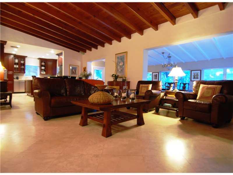 Cutting edge Modernism with classical refinement in this totally turn-key 3/2 in Coral Gables most desirable Platinum Triangle neighborhood close to Fairchild Gardens, Matheson Hammock, the Grove & S. Miami. Dramatic architecture with cathedral open beam ceilings, wide open floor plan has gorgeous new kitchen open to large breakfast rm & family room, large formal dining room, formal living room, good sized master suite, new bthrms, impact glass front door, 2 car garage. Sunset Elementary home school
