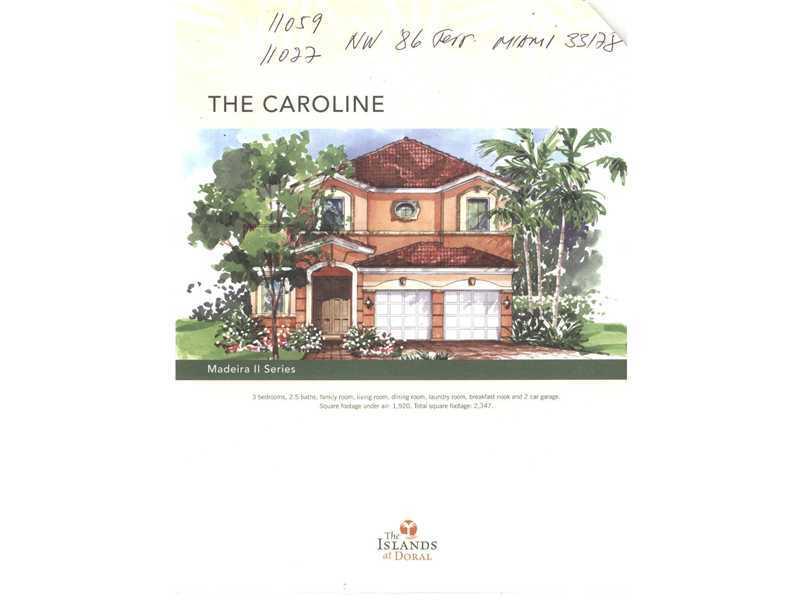 VERY NICE 3 BEDROOM 2.5 BATH, TWO CAR GARAGE, KITCHEN WITH GRANITE COUNTERTOPS AND STAINLESS STEEL APPLIANCES, PARQUET ON FIRST FLOOR AND CARPET ON SECOND FLOOR, PAVED AND FENCED BACK YARD , SHUTTERS, LOCATED IN MADEIRA II, ISLAND AT DORAL COMMUNITY