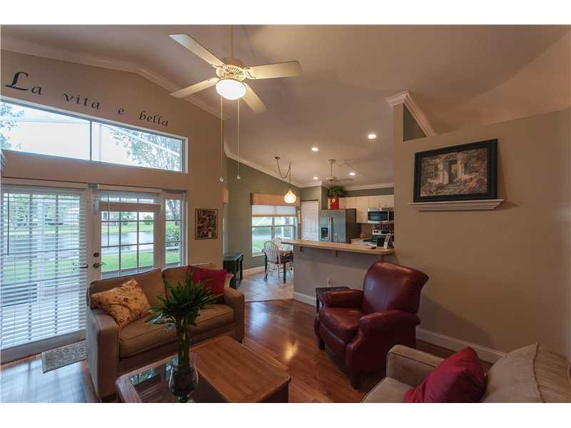 One of a kind lakefront home that shows like a model. Ideally located near an A rated school, parks and is at the heart of Weston. Freshly-painted, with accordion shutters, stainless steel appliances, new washer & dryer, engineered wooden floor, carpeted bedrooms, tiled kitchen & baths. Unique home w/ beautiful French doors leading out to a spacious screened patio overlooking the lake ---perfect for entertaining guests or for relaxation. Special home that's move-in ready for buyers so DON'T MISS OUT!