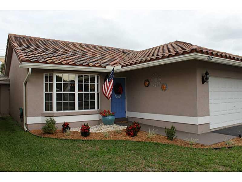 Well cared for home that is within walking distance to Coral Springs' The Walk Shopping & Eateries! 3 bedroom/2 bathroom. Newer Roof 1 1/2 years, Newer Kitchen appliances with Dishwasher brand new. Carpeting 1 1/2 years, New Landscaping & automatic sprink ler pump. Plus newer knockdown ceilings. Inside Laundry Room. Lovely screened in porch that faces East particularly enjoyable during Florida winter months. No Homeowners Association. Hurricane Panels. Dimens are approximate..Semi-attached home(see photo)
