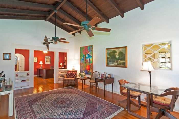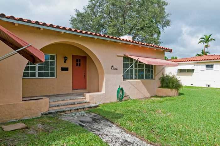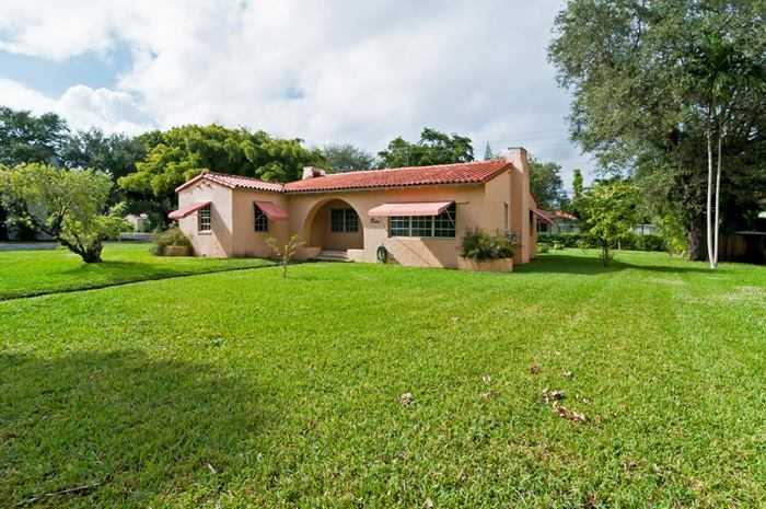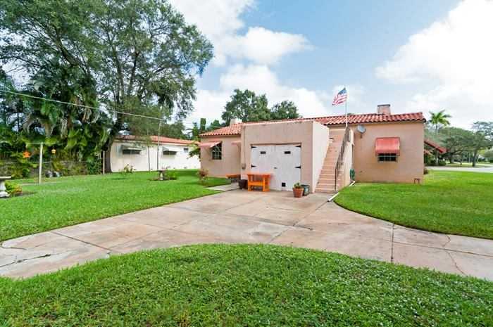 TWO BEDROOMS AND ONE FULL BATH ON A LARGE CORNER LOT IN MIAMI SHORES. WALK TO ALL THAT DOWNTOWN MIAMI SHORES HAS TO OFFER. ONE CAR GARAGE, PATIO AND ROOM FOR A POOL. LARGE LIVING ROOM WITH HIGH WOOD BEAMED CEILING AND WOOD BURNING FIREPLACE. ORIGINAL WO OD AND QUARRY TILE FLOORS. SUN ROOM, FORMAL DINING ROOM AND LARGE KITCHEN.