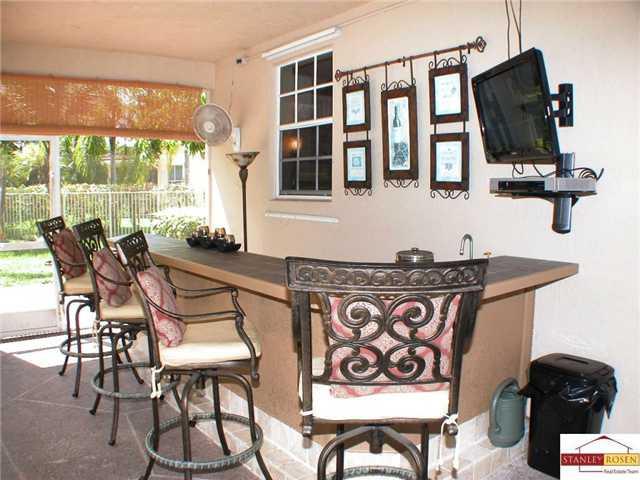 Beautiful neat home located on a cul-de-sac w/ partial view of the lake & wonderful private backyard no neighbors in the back: French doors leading to screened in pool and spa with summer kitchen, great for entertaining! Plantation shutters downstairs th roughout the 1st floor. Updated kitchen w/ SS appliances, granite and tile backsplash. Great master bedroom with huge sitting area! Freshly painted with diagonally laid tiles on 1st floor, laminate and carpet 2nd Floor. MUST SEE!!!!!