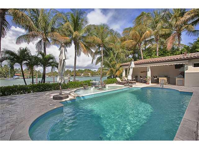 Stunning and secluded Waterfront Estate on prestigious North Bay Road. This Classic Florida Mediterranean on Biscayne Bay features protected dockage for a large yacht, 8-bed, 8.5 bath, wide plank wood floors, fireplace, gourmet kitchen with Viking applian ces, media room, expansive master suite with his and her baths and a large private loggia overlooking the water. Swimming pool, spa, outdoor kitchen, cabana bath and separate guest apartment. +/-7,579 Adj. SF (per owner). 100ft of water frontage.