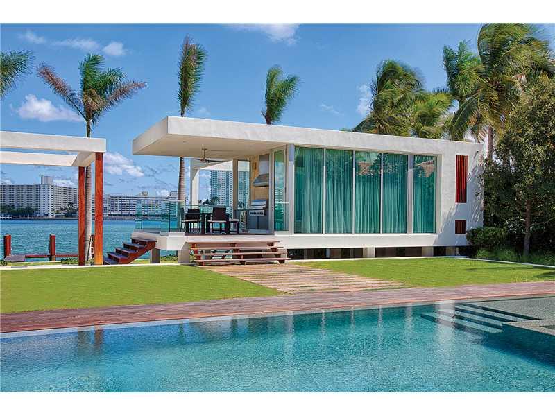 This waterfront, uber contemporary masterpiece bespeaks of modern luxury in a clean & sleek form. Tahitian Pebble stone driveway, along with Dominican Coral Stone entryway floating over flowing ponds highlight the exterior. Anchored by American Black Wal nut flooring, the interior is a triumph of sophisticated design and incl. soaring ceilings, elevator, theatre, gourmet kitchen w/dumbwaiter to master suite, 1,800 SF master w/ sep. private 2nd floor pool, gym, spa, rooftop deck, guest house & cabana.