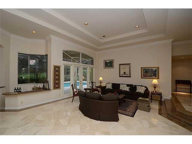 STUNNING GOLF VIEWS FROM CUSTOM BUILT RESIDENCE IN WESTON HILLS COUNTRY CLUB! YOU'LL LOVE ENTERTAINING ON HUGE SCREENED POOL/PATIO AREA OVERLOOKING 11TH HOLE OF TOUR COURSE. ENTIRE ROOF REPLACED 2012, 3 A/C UNITS REPLACED 2011, SATURNIA MARBLE FLOORS, CRO WN MOLDING, PICTURE WINDOWS IN WET BAR & FAMILY RM HAVE PANORAMIC & UNOBSTRUCTED VIEW OF GOLFCOURSE. 4 BD + OFFICE, 4.5 BA, POWDER BATHROOM CAN BE CONVERTED TO FULL BATH. GOURMET KITCHEN, NEWER SS APPLS, GRANITE COUNTERS, 42" CABINETS & FRENCH DOORS.