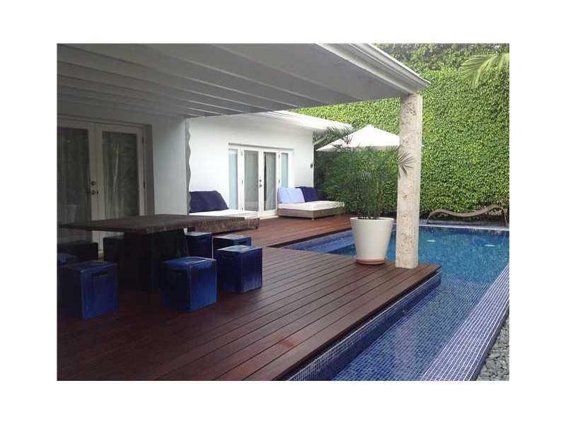 FULLY REMODELED, MODERN OPEN LAYOUT. MARBLE, SLATE & DARK PINE WOOD FLOORS. BRAND NEW: BATHROOMS, KITCHEN, PLUMBING, ELECTRICAL, A/C AND ROOF. HUGE MASTER DRESSING ROOM/CLOSET AND MASTER BATHROOM WITH DESIGNER AIR TUB, FIXTURES & TV. BRAZILIAN IPE WOOD DE CK AND PORCH. ITALIAN GLASS TILED POOL. VAULTED 14' CEILINGS AT FOYER. BARBEQUE AREA. A/C UTILITY AND STORAGE ROOM & OUTDOOR SHEDS. ACROSS THE STREET FROM GOLF COURSE. WALKING DISTANCE TO BEACH. CLOSE TO LINCOLN ROAD, SOUTH BEACH, RESTAURANTS AND SCHOOLS.