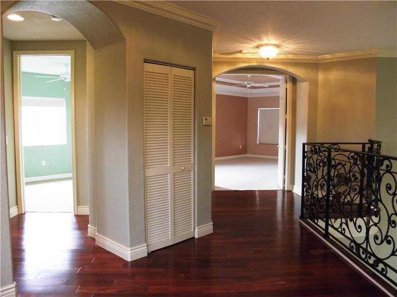 BEAUTIFUL LAKE FRONT POOL HOME, (CASTLE STYLE) IN DESIRABLE SUNSET LAKES, VAULTED CEILINGS, CUSTOM MARBLE FLOORING, UPGRADED KITCHEN W/GRANITE COUNTERTOPS, CIRCULAR STAIRCASE W/CUSTOM IRON RAILING, BRAZILIAN CHERRY HARDWOOD FLOORING & CUSTOM LIGHTING, 4TH BEDROOM GROUND FLOOR W/DOUBLE GLASS DOORS & CHERRY WOOD FLOORING, LARGE MASTER BEDROOM W/BLACONY & CIRCULAR STAIRS TO POOL DECK, LARGE MASTER BATH W/JACUZZI TUB & DUAL SHOWER, LOFT W/BUILT-IN MEDIA CENTER, ACCORDION SHUTTER & MUCH MORE! (CORPORATE OWNED)