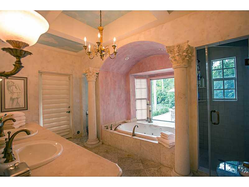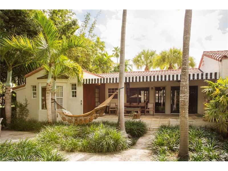 Tranquil oasis: Immaculate 4 bdrm, 3 bath corner pool home features a park- like 20,000 sq. ft. triple lot. Enjoy exquisitely landscaped gardens & dark bottom lagoon pool w/ cascading waterfalls, perfect for entertaining in privacy & grandeur. Easy living in this coveted one story walled & gated estate w/ features: living rm w/ lg. covered porch, eat -in spacious gas kitchen, garage. Fall in love w/the charm, & architectural details: pecky cypress ceilings, original mosaic clay tiles. Some impact doors.