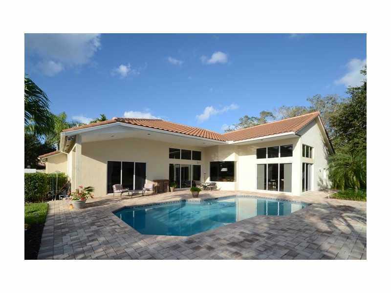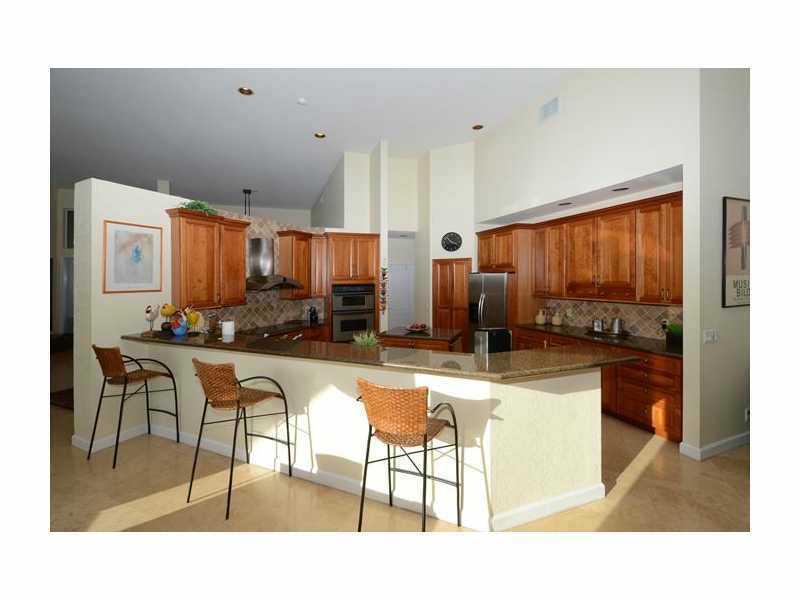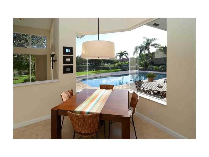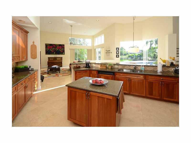 Perfectly placed on a quiet cul de sac street, this sprawling 1 story has New 24 inch Travertine floors throughout living areas with soaring 16 ft ceilings, nestled on a 1/2 acre corner lot, with mature landscaping.& Stunning lake & pool views. Gourmet c ustom kitchen features center island, granite counter tops and SS appliances. Travertine flooring in all baths, custom blinds, Roof has been recently replaced. Rare side entry 3 car garage with elegant curb appeal. Shows bright & airy. THIS IS A MUST SEE