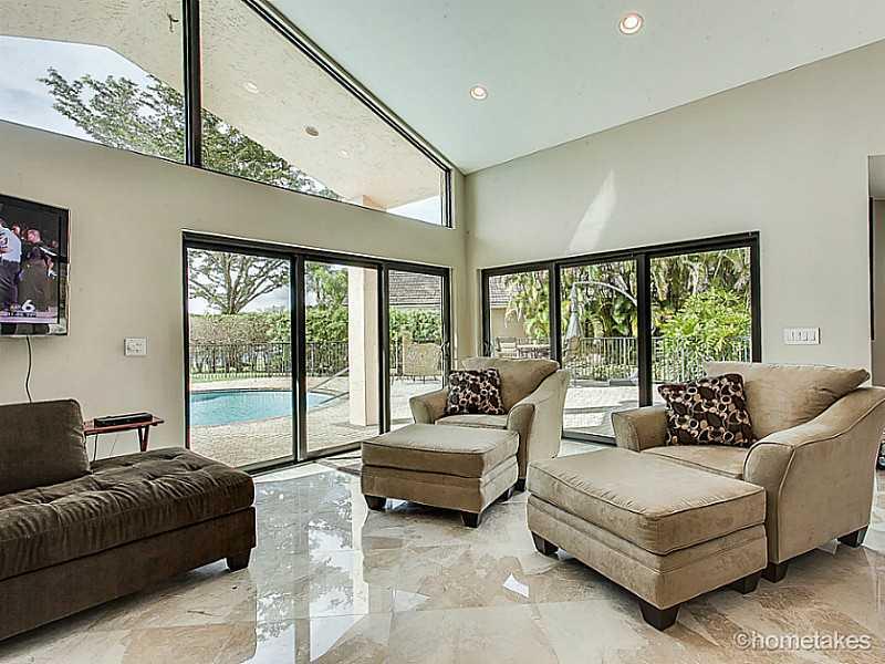 STUNNING $300,000+ RENOVATION IN 2013. 5 B/R LAKEFRONT. $100,000 custom kitchen with "Wolf" natural gas 6 burner cooktop & "Thermador" appliances. Miele built-in coffee/espresso machine. Granite counters. Gorgeous 24" marble flrs. New impact windows/doors . New custom baths & closets, Roof replaced 2001. 3 newer C/A/C's. Master bath 100% new with walk-in shower & free floating soaking tub. New gas tankless wtr. htr. Gas dryer. Oversized pool/patio area. New landscaping.