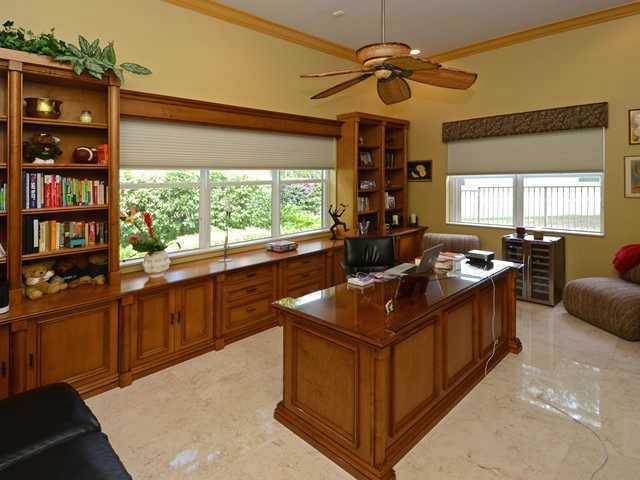Pride of ownership shows in this immaculate custom estate with beautiful golf views* home includes a huge playroom/billiard/theater room & office/den* Original owner's* 1st time on market*updated kitchen* 2 bars, 1 is wet* Built ins* Laundry room with wal k in closet & ceramic sink* Accordian hurricane shutters* marble flooring in living areas * crown moldings * 8 lots of closets* heated pool/spa with baby fence * Circular pavered driveway w 3 car garage complete w garagetek system