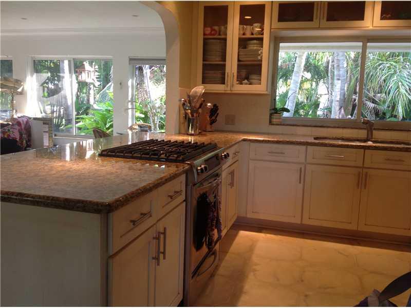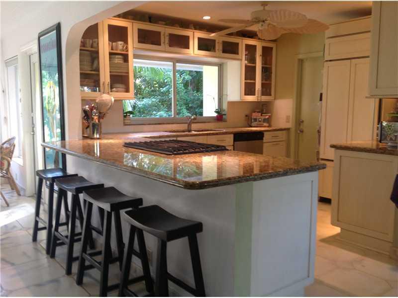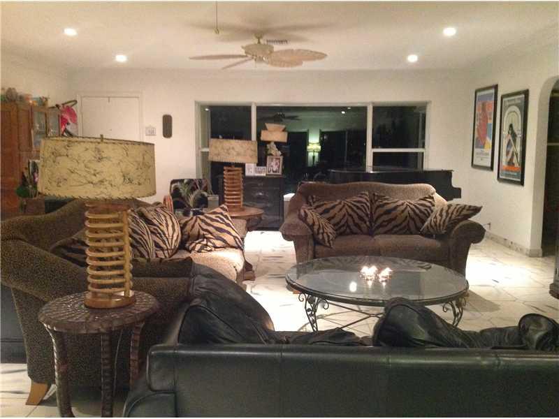 Spacious open floor plan home in most prestigious location of Hollywood Lakes. Modified to 2 bed/2 baths plus den/office-can be converted back to 3 bedrooms.1 car garage.Light filled kitchen w/lush tropical landscaping views, granite countertops,breakfast bar,glass front wood cabinets & gas stove. Grand windows & triple crown molding in large living room area.Cuban tile floors. Beautiful yard w/room for a pool.Stylish patio w/pavers.Half circle driveway. Deep double lot, over 13,000 sq ft.(134 ft deep).