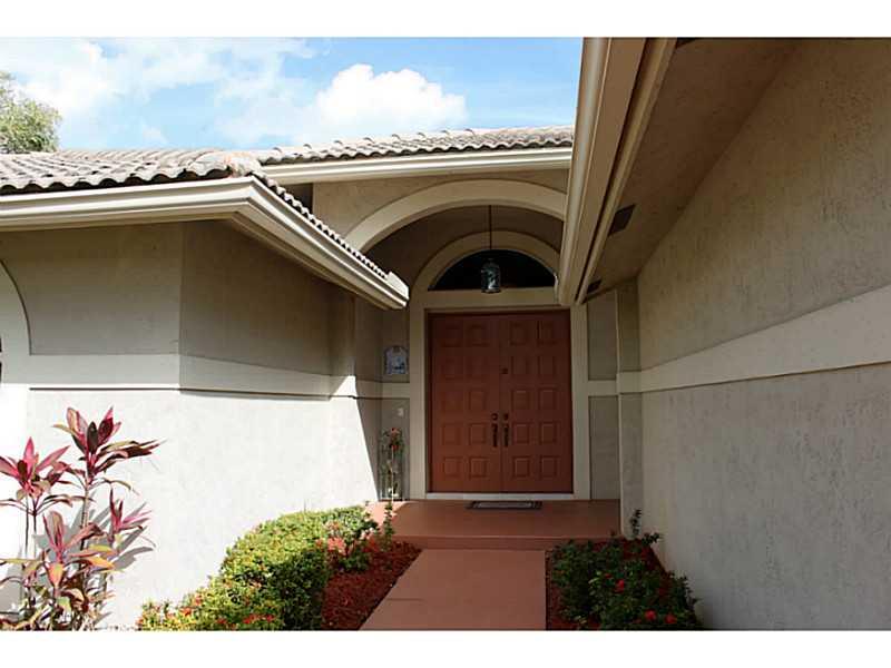 Lovely, pristine, well cared for home in Coral Springs Country Club. 12' Ceilings in Living areas. Kitchen with beautiful new granite counters, plus glass block details allows light with privacy. Expansive private views of water & a partial golf view one block over from home when viewed from pool & living areas.Split Bedrms. Newer A/C, water heater & pool filter/pump. Built in speaker system. 8' triple panel sliding doors. Security alarm. Pool has child gate. Lush landscaping. No Homeowners Association.