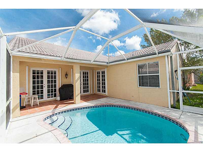 Beautifully maintained 3 bedroom, 2 bath home in The Falls featuring wood flooring throughout, updated kitchen with custom wood cabinets, granite countertops and stainless steel appliances. Wonderful patio and screened pool area; great for entertaining! Enjoy everything the Weston lifestyle has to offer including A+ schools, parks, dining, shopping all at close proximity to the highways. A Must See!