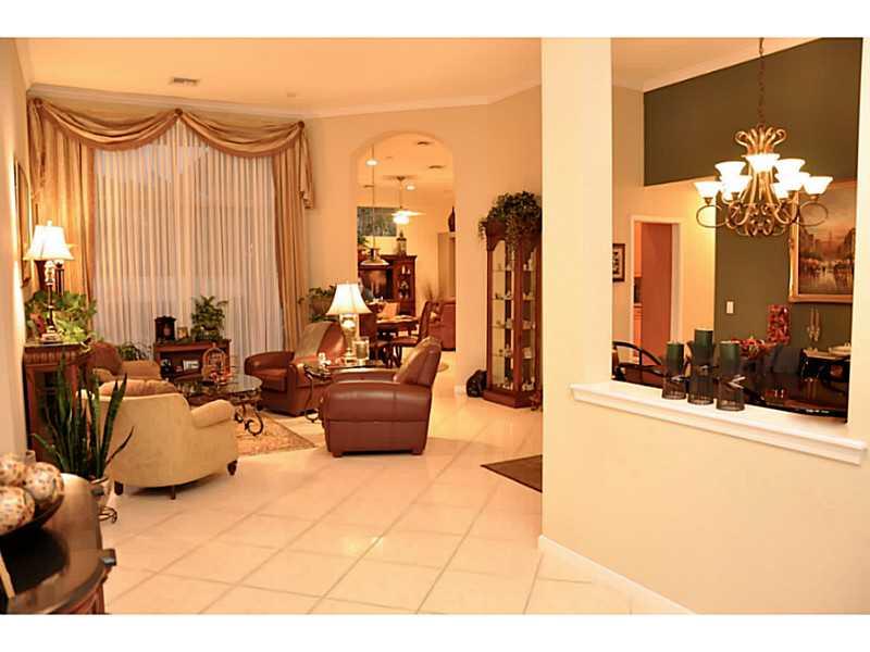 Providing a feeling of serenity, privacy and comfort, this gorgeous Captiva model home captures you from the moment you enter through the front doors into the foyer. This exquisite, 5 Bed 3 Bath home features open, expansive spaces throughout the living areas with crown molding and upgraded tile floors in-laid in diamond shape. The well appointed gourmet kitchen has maple wood cabinets, a 4 gas stove top burner and granite counter top w/ full backspalsh. Heated pool has brand new diamond-brite & spa.
