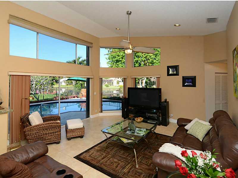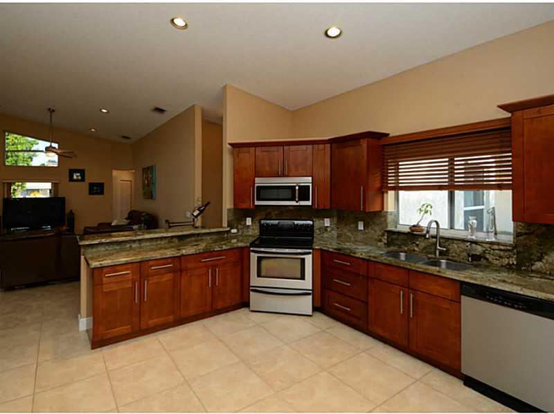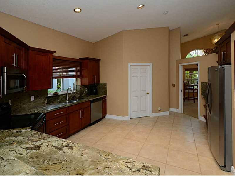 BEAUTIFULLY MAINTAINED AND SPACIOUS HOME WITH LUSH, MANICURED LANDSCAPING, VOLUME CEILINGS, RENOVATED KITCHEN WITH WOOD CABINETS, GRANITE COUNTERS, STAINLESS STEEL APPLIANCES, NEW REFRIGERATOR. DELIGHT IN SERENE VIEWS OF THE LAKE WHILE RELAXING ON YOUR LA RGE FENCED PATIO OR COOL OFF IN A SPARKLING POOL. UPDATED BATHS; UPDATED ROOF AND A/C SYSTEM; RESURFACED POOL. LUXURY OF YOUR OWN COMMUNITY'S TENNIS COURT, KIDS PLAYGROUND AND PICNIC PAVILION.