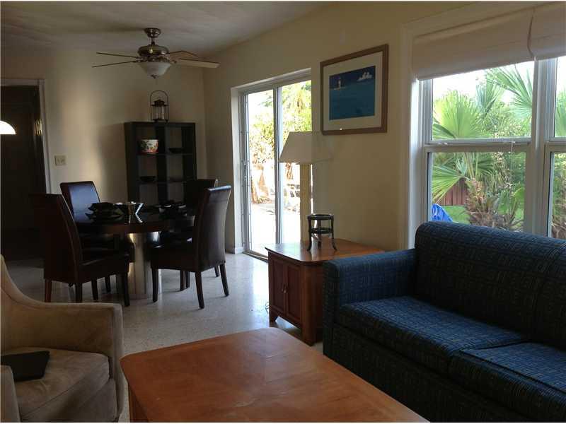 Updated 3 bed/2 bath plus den home. Den may be used as an office or 4th bedroom. Kitchen features wood cabinets,gas stove,concrete counter-tops,marble tile back-splash, stainless steel fridge & dishwasher. Terrazzo floors throughout.2nd bath has new wall tiles,slate tile floor & Jacuzzi.Laundry room w/washer & dryer. Gas water heater.Good sized backyard .Front patio seating area. Waterfront w/no ocean access,but great for kayaking or paddle boats.3rd bedroom has armoire,no closet.No closet in den