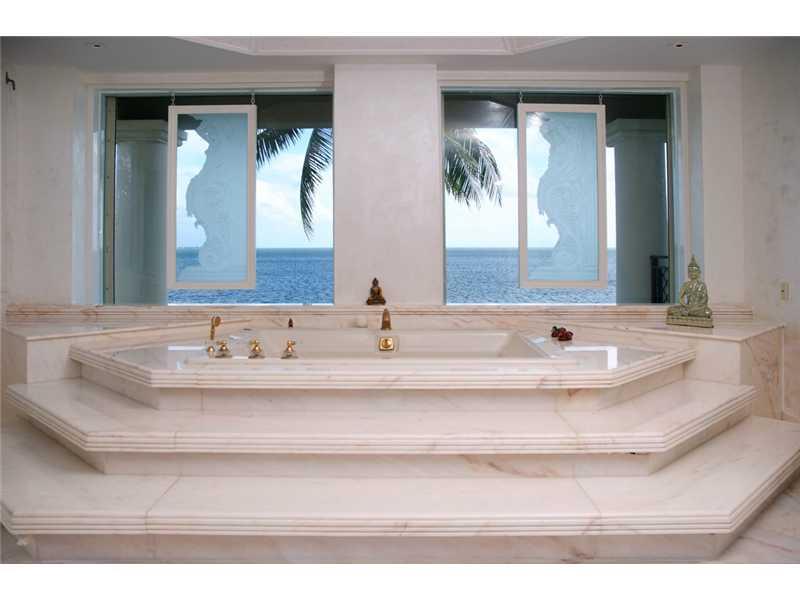 Experience this Rarely Available, Direct Oceanfront, 3-story Palatial Villa in the Exclusive Gated Community of Bayshore Villas. Enjoy your ocean views with over 8300 sq/ft of living space in this 4 bed/5.5 bath home with 55' of private unobstructed water frontage + a deeded dock in your backyard. This Villa features an open-plan living area with an entertainment bar and a new custom designed gourmet kitchen. The Master Bedroom has his/her bathrooms & closets. Includes private elevator + maids quarters.