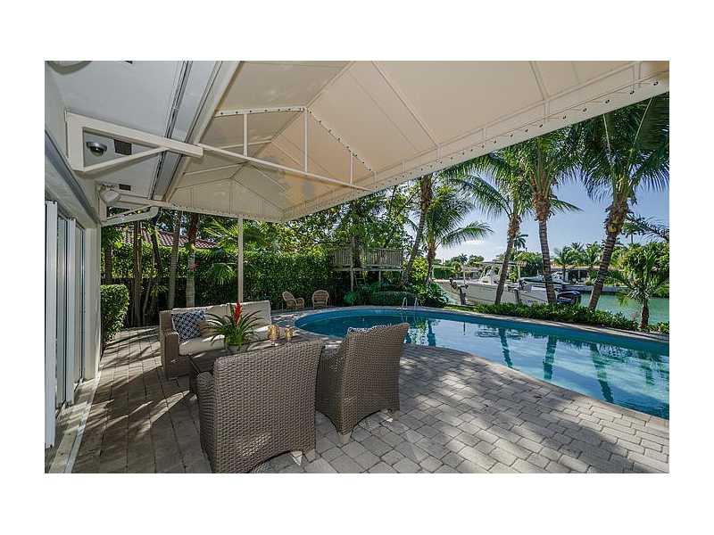 Beautifully refined Mid-Century gated waterfront home with high-end lush tropical landscaping. Relax and enjoy the pristinely maintained large indoor & outdoor entertaining areas that feature a breathtaking view of the water. This home has a wide open flo or plan, gourmet kitchen,Pool, boat lift and generator.