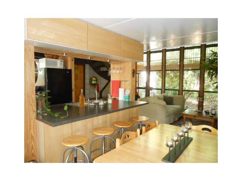 Mid-Century Modern classic, Chuck Reed Jr. designed, nestled among ancient Oaks, two story living room contains floating spiral staircase leading to the balcony of the loft bedroom & office. The interior/exterior is defined by exposed concrete blocks, wo od beams & floor to ceiling louvered windows enable no distinction between indoors and out. 2 bed, 1 bath cottage complete the site. Visit http://journals.fcla.edu/browardlegacy/article/view/76790/74361 - not subject to appraisal, cash buyer preferred