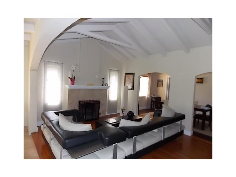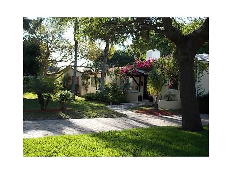 Beautiful, elegant, bright, loaded with character! Updated 4/2 with huge 20'x40' diving pool, double car garage + separate 1/1 guest house on oversized corner lot on quiet street in Miami Shores. 1930s gem features open beam cathedral ceilings, archways, working fireplace, mosaic tile + wood floors, marble foyer, separate formal dining and living room, open kitchen w/granite bar to family room, S/S appliances, granite, oak cabinets. French doors to patio. Marble/onyx baths, new A/C, marble driveway.