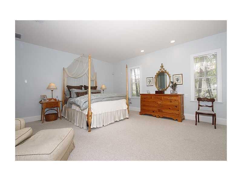 Gorgeous S. Gables home, impeccable & tasteful throughout. Chicago Brick courtyard & foyer entry, formal living room w/ woodburning fireplace, formal dining room, hardwood flrs, open beamed ceilings, charming archways, French doors. All white kitchen w/ s tainless appliances, sunny family room & breakfast area give way to an enchanting central brick courtyard & pool. Owner's suite is huge w/ marble bath, 3 more spacious bedrooms + 2 baths. 4th bedroom + bath are private. Indoor laundry room, so much more!