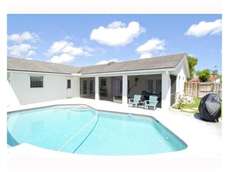 INCREDIBLE DEAL! GORGEOUS STONE-TRIMMED, 4 BEDROOM/2 BATH HOME. TROPICAL LANDSCAPING. ENTER THE WARM FOYER WITH 9FT VAULTED CEILINGS TO THE BRIGHT AND SPACIOUS LIVING ROOM. NEW UPGRADES: 18 INCH DIAGONALLY PLACED TILE, BEAUTIFUL CROWN MOLDINGS, NEW KITCHE N APPLIANCES, NEW BATHROOM TILE FLOOR AND VANITY, NEW PLUSH BEDROOM CARPETING, NEW A/C COMPRESSOR, AND UV AIR PURIFICATION SYSTEM. FRENCH DOORS LEAD TO THE SPLENDID SCREENED TERRACOTTA PATIO AND FREE-FORM POOL WITH WATER VIEW.