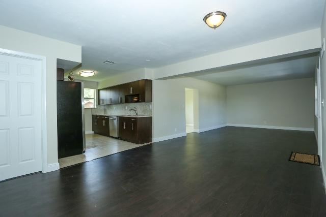 New! Completely remodeled & ready to move in. Regular sale. Featuring dark wood floors, contemporary stainless steel appliances & wood cabinetry in kitchen. Newer doors & ceiling fans in bedrooms. Bathrooms fully updated w/ tasteful neutral finishes. Spac ious laundry room w/ its own window & separate washer & dryer. Beautiful spacious master w/ glass sliding doors leading to huge backyard w/ fresh sod, fencing & trees. Great curb appeal. Modern and cool, freshly painted inside & out.