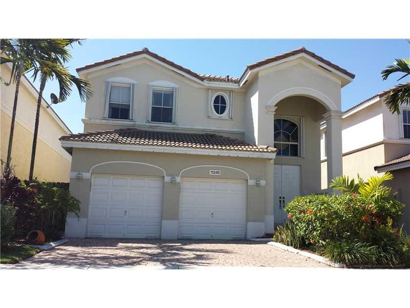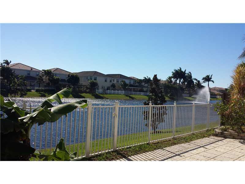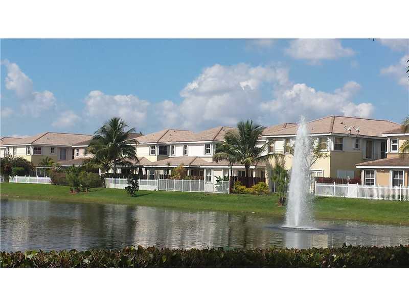 This Amazing 2 -Story Single Family Home sits on a lake with a beautiful view. Biarritz is a Gated Community w/very low monthly maintenance. The property has 3 Bedrooms & 2 1/2 baths with accordion shutters throughout the property, granite counter tops, all tile on the 1st floor and laminated wood on the 2nd floor. A/C unit brand new. Service America Home Ins. is effective until July 2014. A rated Schools. The property has pavers & a gated backyard to the amenities. Gated community, accordion shutters.