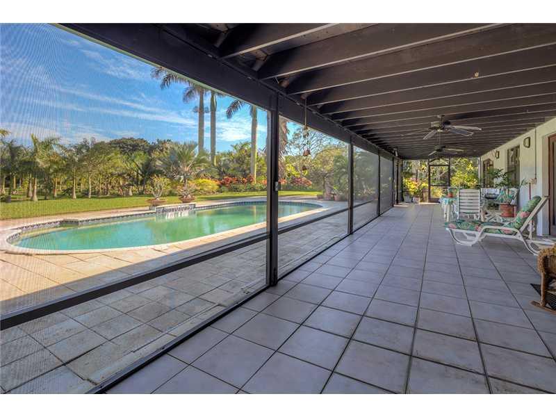 Peacock Estate features 4 Bedroom 3 Bathrooms in Sunshine Ranches SouthWest Ranches with Frank Lloyd Wright inspirations, Media Room, Formal Living Room, Eat in Large Kitchen (needs updating)open Family Room, Wood Floors & Large 2800 Sqare Foot Pole Barn could be converted to barn/stable or Guest Cottage, horses permitted near "A" rated Schools 15 miles west of Ft Lauderdale Great Location for Family Home Property appraised 12/2013. Lots of Potential! Amazing Lot, Garden & Landscaping. Must see.