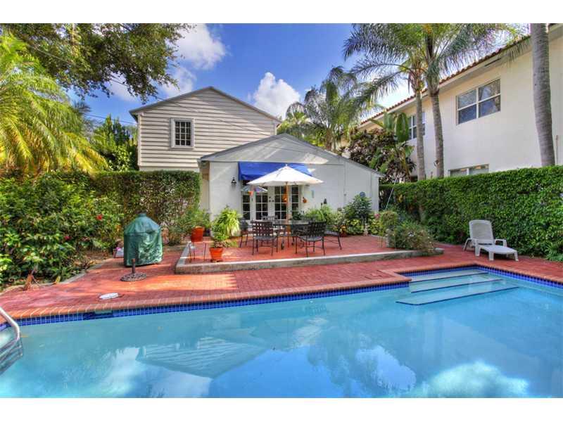Elegant Colonial-revival on a quiet, lush street in North Coconut Grove. Formal living & dining room flank the classic foyer entryway with central staircase. Light-filled galley kitchen leads to family room with French doors that open to the pool and pati o. One bedroom on the main floor with en-suite bath & garden views + the Master Bedroom/Bath and an additional guest bedroom/bath are located upstairs. Impact windows/doors throughout, generously-sized laundry room & fully fenced property w gated entry.
