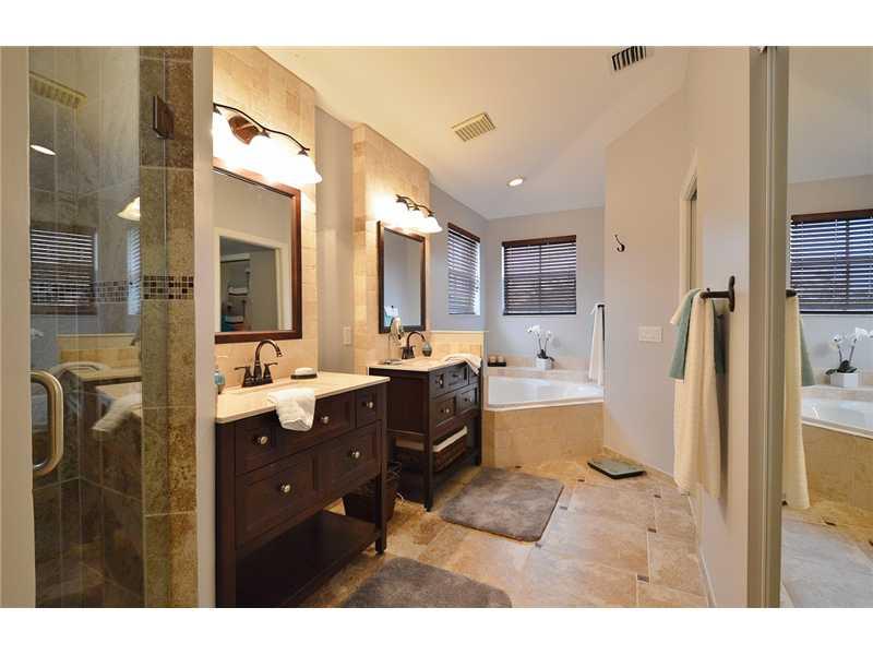 THIS GORGEOUS WATERFRONT 4/3 SINGLE FAMILY HOME IN A PRESTIGE COMMUNITY W/AN AMAZING CLUBHOUSE FEATURES NEW GOURMET KITCHEN W/HUGE ISLAND, DOUBLE CONVENTIONAL OVEN, & STIANLESS STEEL APPLIANCES. REMODELED MASTER BEDROOM & BATHROOM W/NATURAL STONE. GUEST B EDROOM ON 1ST FLOOR AND REMODELED DOWNSTAIRS BATHROOM. BUILT IN BAR W/WOODEN CEILING IN FRONT ROOM & WINE CELLAR. 2'' WOODEN BLINDS THROUGHOUT THE HOME & SECURITY ALARM. 600 SQ.FT. SCREENED PATIO W/TILE & TEAK FLOORING, CUSTOM OUTDOOR KITCHEN W/BBQ.