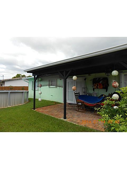 This house has been totally updated. newer kitchen cabinets with granite countertops, newer appliances. Interior and exterior has recently been painted, AC is 2 yrs old, roof replaced in 2006,tile floors throughout, updated bath, crown molding, french doo rs, new front and back aluminum gutters, security system with 24 hour surveillance cameras. Accordian hurricane shutters, front and back porches, 1yr old above ground pool, wood privacy fence, sprinkler system with well, storage shed
