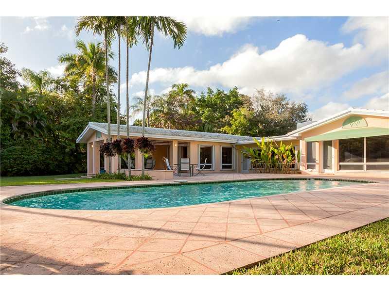 Trophy property in prestigious South Coconut Grove on a no-traffic street. Home with exquisite floor plan and French doors leads to pool and massive 25,000 sq ft private back yard. This home is high above sea level on a ridge and does not require flood insurance. Update existing house or build your dream home. Trophy property in trophy location! Neighborhood features private police patrol.(Potential to subdivide this lot 115 wide X 216 deep)