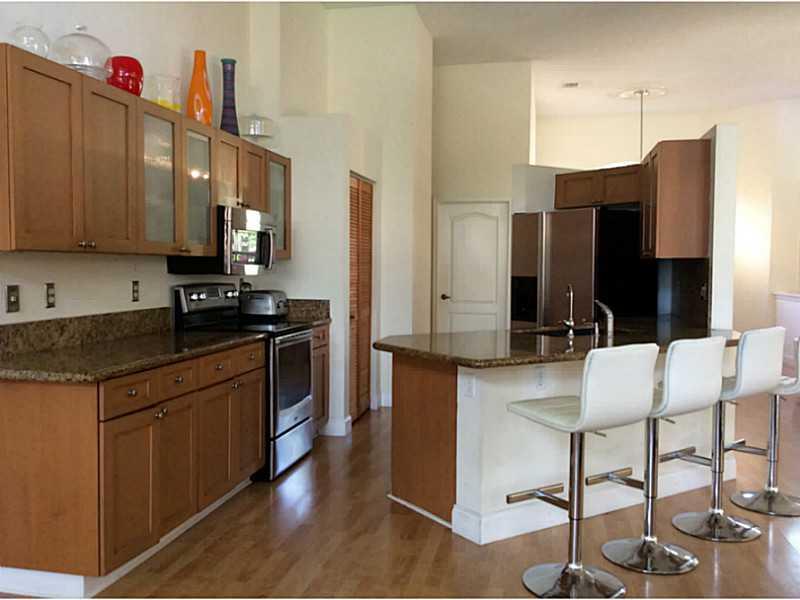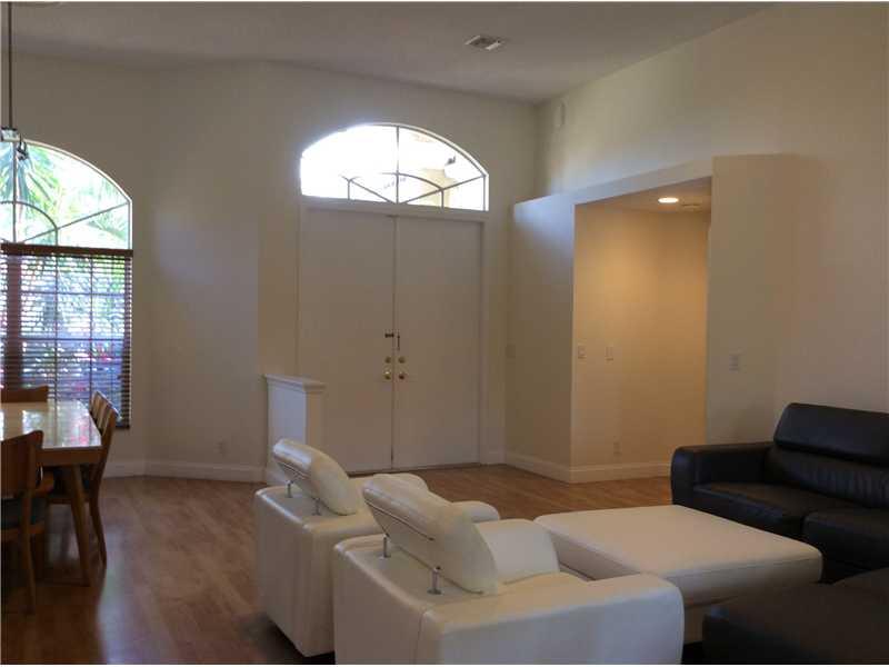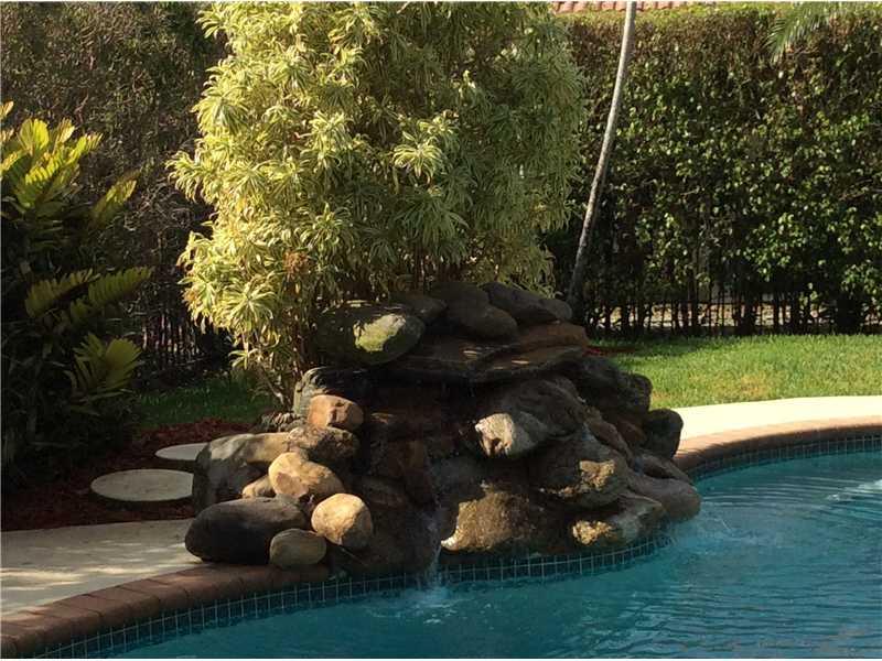 PRICE REDUCED in Weston Hills Country Club. This fabulous updated in 2009, 4 bedroom, 3 full bath triple split bedroom plan features updated bathrooms and kitchen w/breakfast area, eat-in counter, S/S appliances/granite counter tops. Double door entryway opens to bright wonderful floor plan featuring 12 foot high ceilings, showcasing tropical pool area. Formal dining/ living, huge family room, wood laminate floors(No Carpet),jacuzzi,marble tile in master. Pavered circular driveway fits 4+ cars, A+ Schools