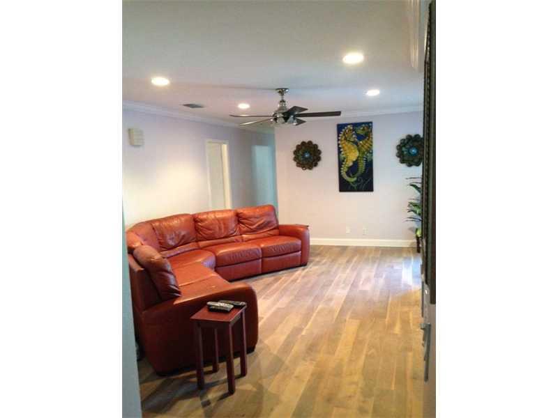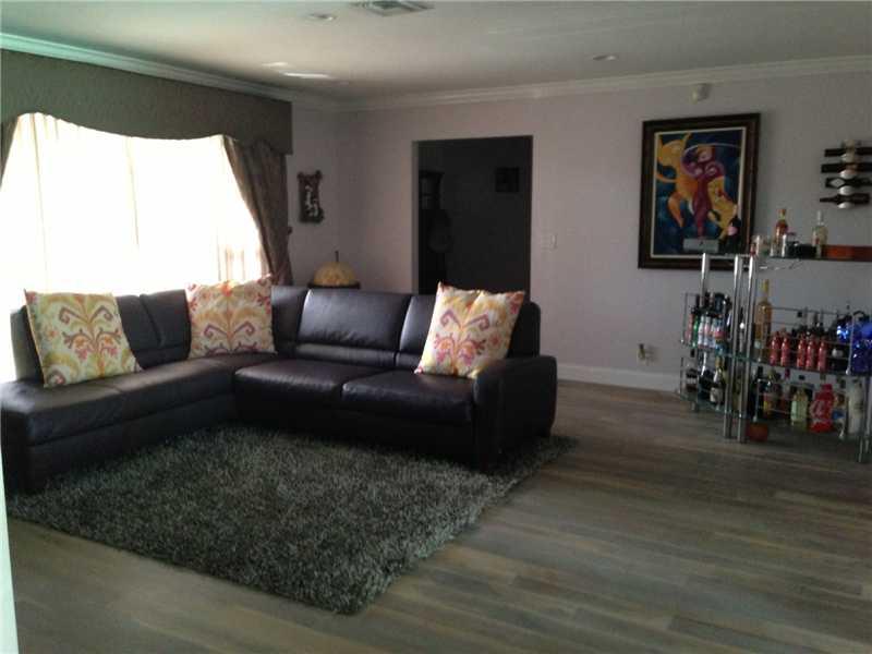Ready to move in! Easy showings. House completely renovated, walnut wood floor in entire house, renovated bathrooms and Kitchen. New impact doors and windows and hurricane garage door. Nice landscaping and 12 ft high healthy ficus hedge in back yard for privacy. Crown molding throughout house. Master bath has shower and jacuzzi tub.