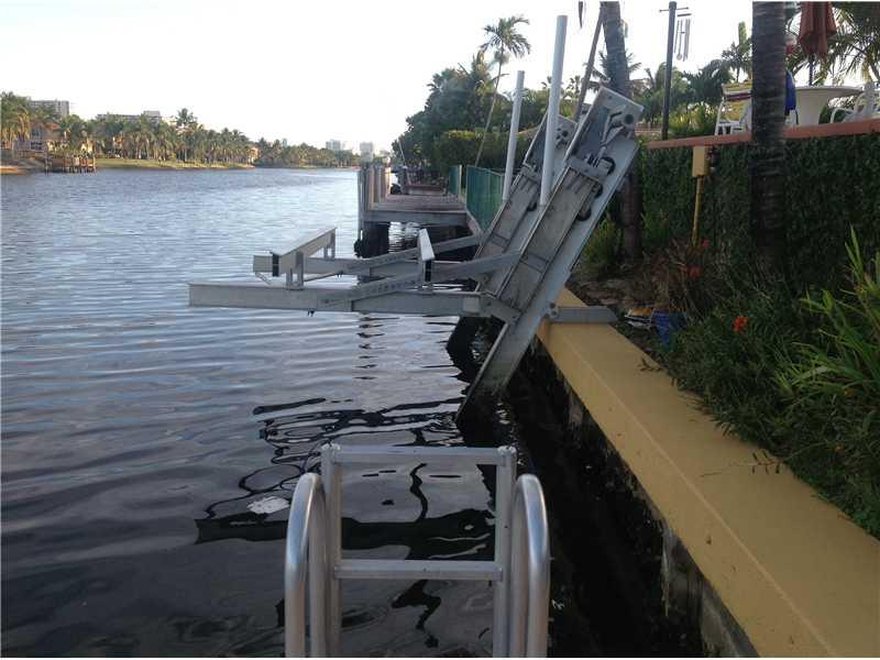 Magnificent location w/ spectacular water views.90 ft of waterfront w/approx.10,000 lb jet ski & boat lift.Large 3 bed/4bath home. Master has french doors w/water views & 3 walk-in closets.Eat-in kitchen w/breakfast bar.Family room w/bar area.Formal dinin g room.Beautiful pool.Travertine floors throughout.Marble bathrooms.Elegant entrance w/tumbled marble,half-circle driveway & wrought iron, electric security fence.Surround sound in main & pool areas.Most windows impact resistant.2 car garage w/storage.